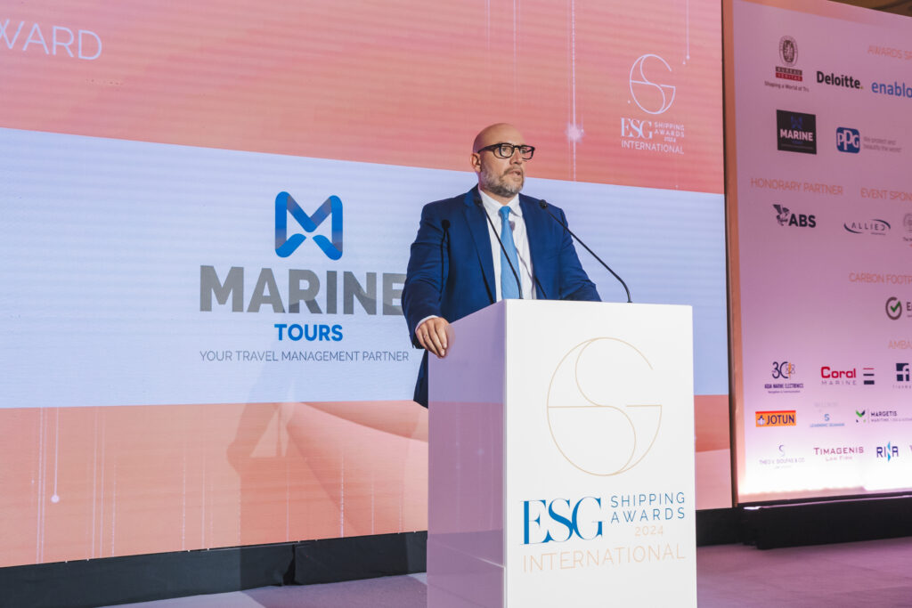 Mr. Konstantinos Oikonomou, CEO of Marine Tours, had the honor to participate and present the “ESG Social Leader” Award to the recipients of the Gold, Silver and Bronze Category as follows:
